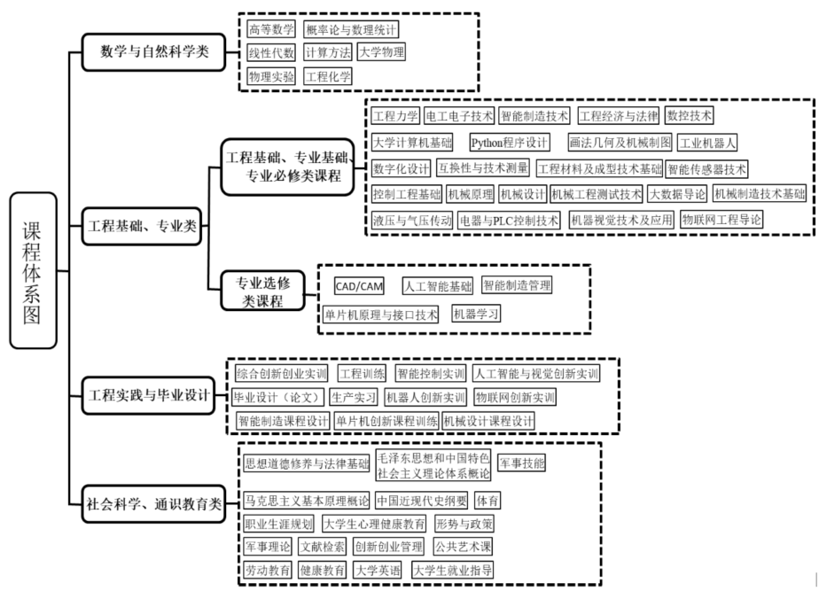 数字化设计、机械设计、工程力学、智能制造技术、电器与PLC控制技术、数控技术、工业机器人、机器视觉技术及应用