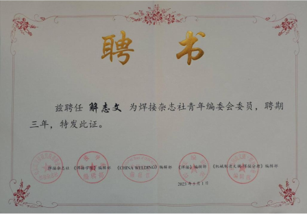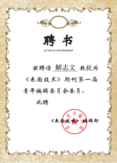 九游在线官网_九游(中国)机械学院解志文教授被聘为《表面技术》《焊接杂志社》青年编辑委员会委员