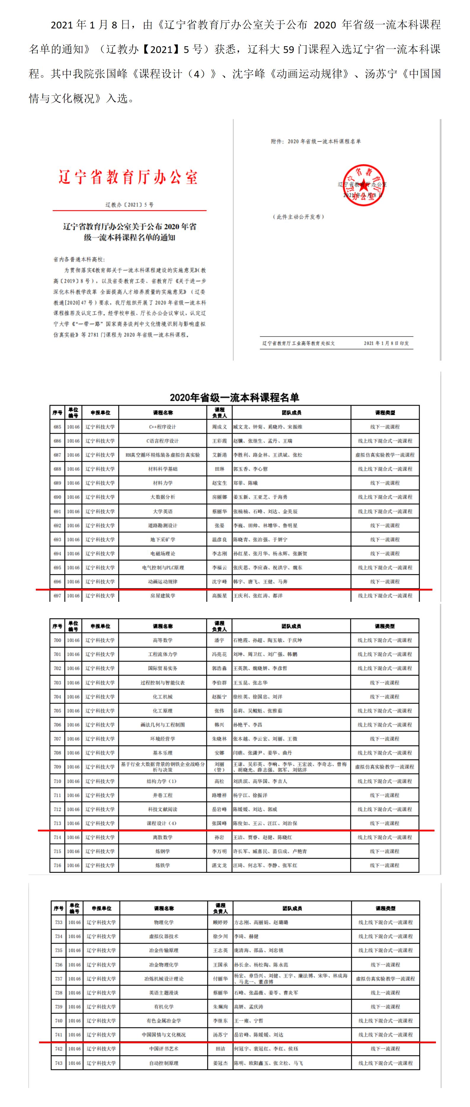 2020 年省级一流本科课程(我院3门课程入选)