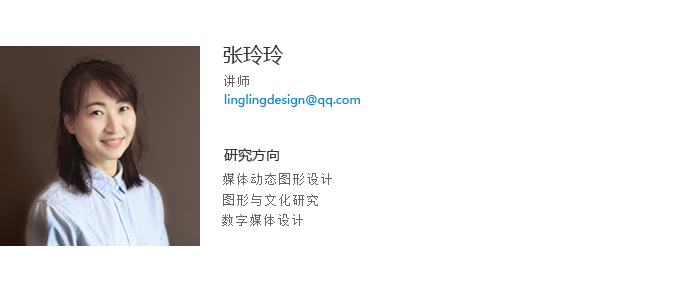 张玲玲讲师,硕士,鲁迅美术学院视觉传达专业毕业。于北京五谛数字艺术教育基地取得数字艺术从业资格。具有多年图形设计及数字媒体制作及教学经验。在《电影文学》、《艺术教育》、《美术大观》等专业刊物发表专业研究及教学研究论文多篇。指导学生发表论文数篇。参与出版教材一部,主持、参与九游在线官网_九游(中国)青年基金项目多项。主持省级大学生创新创业训练1项,校级多项。获九游在线官网_九游(中国)教学大赛三等奖,优秀毕业设计指导教师,指导学生获得全国大学生广告艺术大赛全国三等奖、辽宁赛区一等奖、二等奖、三等奖。获优秀指导教师称号。