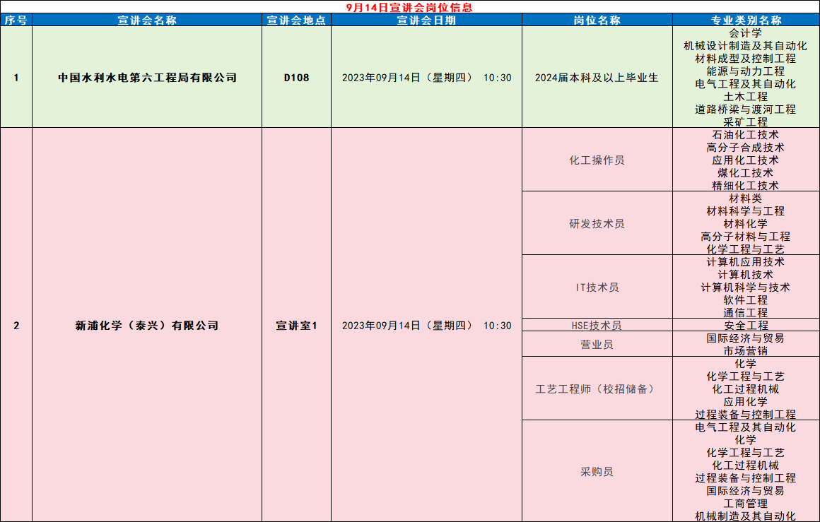 矿业学院九月宣讲会岗位信息
