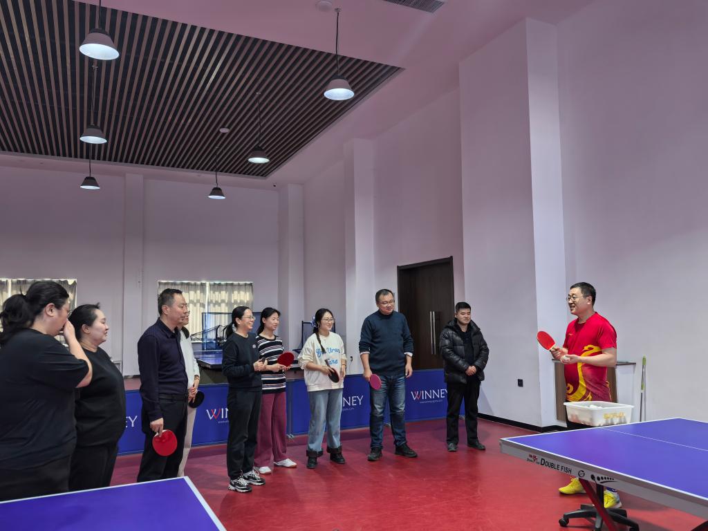 本次活动邀请了校乒乓球协会主席关学伟老师为大家开展了别开生面的乒乓球教学活动,关老师为大家讲解了乒乓球握拍姿势、挥拍的基本动作和步法,并亲自上阵实战指导教学,不仅激发了老师们对乒乓球的浓厚兴趣,也让大家在紧张的工作之余得到了放松,享受轻松愉快的氛围。