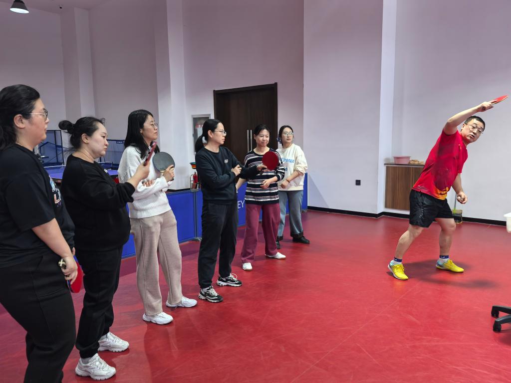 为进一步普及乒乓球运动,弘扬国球精神,矿业学院分工会3月6日中午在校乒乓球馆组织了乒乓球体验活动,学院全体女教师参加,部分男教师主动参与活动。