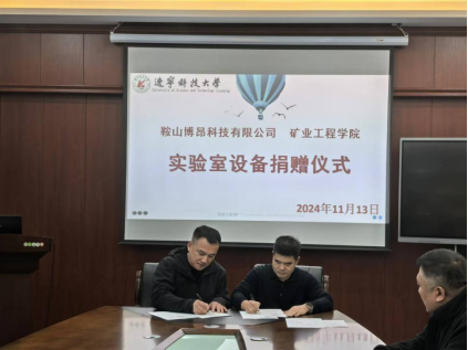 2024年11月13日,矿业学院举办了鞍山博昂科技有限公司实验室设备捐赠仪式,鞍山博昂科技有限公司董事长谭晓宇、矿业学院班子成员参加了捐赠仪式。捐赠仪式上,双方签订了捐赠协议,并就未来在科研合作、人才培养等领域的深入交流达成了共识。捐赠仪式结束后,学院指派专人负责接收和保管该设备,并将确保其合理配置和科学使用,将企业和校友的关爱落到实处。