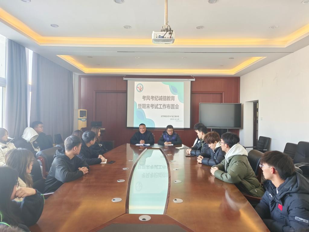 12月29日中午,矿业工程学院在博爱楼430会议室召开考风考纪诚信教育暨期末考试工作布置会,学院党委副书记白龙君及学生会干部、各班班委代表参加。