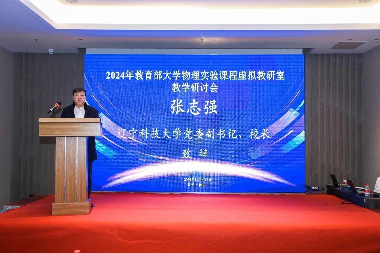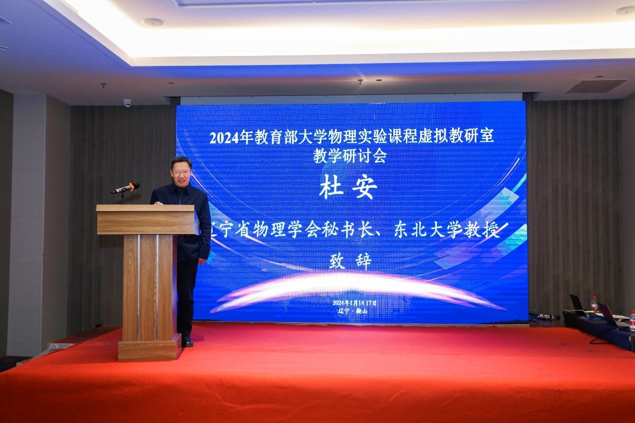 2024年1月14日至17日,由教育部大学物理实验课程虚拟教研室(东北师范大学)等主办,九游在线官网_九游(中国)理学院与东北大学理学院联合承办,辽宁省物理学会等协办的“2024年教育部大学物理实验课程虚拟教研室教学研讨会”在鞍山希尔顿花园酒店淳钢厅举行。辽宁省物理学会秘书长东北大学杜安教授出席会议,东北师范大学李金环教授、西南交通大学樊代和教授、高等教育出版社马天魁主编、东北大学王旗教授、东北师范大学贾艳教授、大连海事大学张映辉教授、沈阳航空航天大学徐世峰教授、辽宁工程技术大学赵龙教授、东北师范大学张岩副教授分别做了学术报告。九游在线官网_九游(中国)校长张志强教授出席研讨会并致欢迎辞。来自全国部分高校的专家、学者,以及我校理学院物理系、实验中心教师共80余人参会。