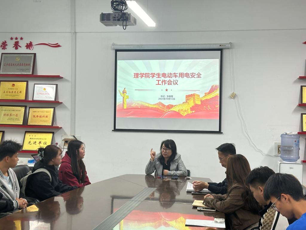 10月12日下午,理学院针对学生电动车用电安全问题召开了会议,理学院党委书记、研究生辅导员张春霞要求电动车在校园内不允许载人,充电时必须在指定区域进行,以防止因私拉电线引发的火灾隐患。同时,她还强调了骑行安全,要求所有骑电动车的同学必须佩戴安全帽,以减少交通事故带来的伤害。