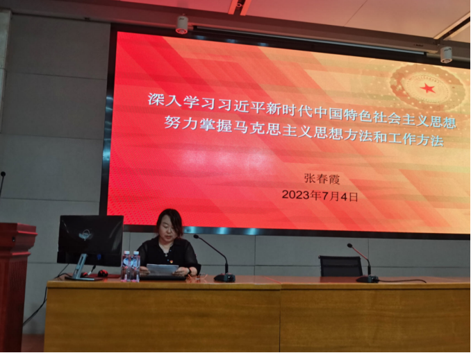 张书记的党课题为“深入学习贯彻习近平新时代中国特色社会主义思想 努力掌握马克思主义思想方法和工作方法”。她从坚持实事求是、坚持战略定力、坚持问题导向、坚持全面协调、坚持底线思维、坚持调查研究、坚持抓铁有痕、坚持历史担当8个方面带领我们学习了马克思主义思想方法和工作方法。