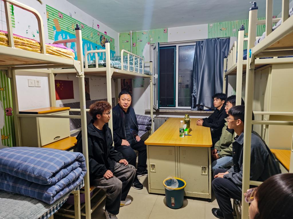 在博学楼班级自习室,理学院班子成员围绕“立鸿鹄志,做奋斗者”为主题,从大学内涵、目标确立、职业规划和个人理想等方面进行详细讲解,号召青年学子努力学习、奋发有为,将个人理想追求融入国家发展,为祖国建设贡献青春力量,并与大家就科研创新、考研就业和良好习惯等方面遇到的问题进行了交流和解答;在龙源社区,理学院班子成员与困难学生对接,全面介绍了国家和学校资助政策,深入了解学生家庭状况,鼓励学生刻苦求学,克服暂时困难,并一致表示要竭尽全院之力深度帮扶,助力贫困学子顺利完成大学学业;在学生宿舍,大家了解寝室成员目前生活状况,鼓励形成良好的生活习惯,互相包容互相理解,建立良好人际关系,共建文明和谐寝室,并叮嘱学生提升安全防范意识。对接期间,班子成员与学生共进晚餐。