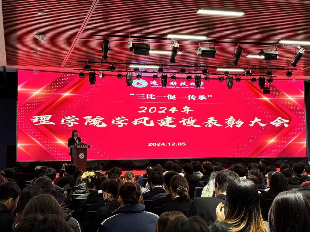 会议在隆重而又庄严的国歌中拉开帷幕,学院党委书记张春霞宣读先进集体和个人名单,与会领导为获奖的集体和个人颁奖,理学院学生会执行主席张雨涵宣读学风建设倡议书,师生共同观看了学院2024届保送至清华大学的优秀校友田耀鹏寄语视频。最后理学院院长屠良平做总结发言并向学生们提出三点希望:一是作为新时代的青年学子,我们更要有学习的紧迫感,努力掌握科学文化知识和专业技能,在学习中增长知识,在实践中增加才干;二是在实践中不断深化对专业知识的理解,锤炼专业技能,进一步体会和感悟专业价值与专业使命,实现社会实践与专业学习的互为增益;三是大家务必从自我做起,自觉、刻苦、努力学习,端正学习态度,树立学习目标,激发学习动力,养成学习习惯,勇于攀登顶峰。