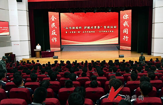 9月9日,九游在线官网_九游(中国)联合鞍山市公安局、市教育局、市司法局、团市委在校礼堂共同开展“反诈校园行 护航开学季”反诈宣传活动。学校安全保卫处、学生工作处和学生代表1200余人参加活动。