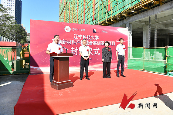 胡军在致辞中指出,该项目主体结构的顺利封顶是学校高质量发展进程中的重要里程碑,标志着学校在科研基础设施建设与高水平学科平台打造上迈出坚实一步。项目开工以来,学校与各参建单位迎难而上、紧密协作,攻克多重困难,为项目如期封顶筑牢基础。胡军强调,菱镁新材料产业是辽宁省重要支柱产业,对区域经济发展具有关键支撑作用。实训基地建成后,将成为全国唯一一个聚焦菱镁领域全产业链人才培养与科技研发的专业基地。这既是学校“十五五”时期夯基改革的重点任务、深化校企协同育人的创新实践,更是服务国家新材料产业发展战略的具体行动。基地投用后,将为材料、化工、机械等优势学科提供一流支撑平台,显著提升高素质应用型创新人才培养能力,推动教育链与产业链深度融合,为菱镁产业转型升级及区域经济高质量发展注入新动能。下一步,学校将全力推进项目后续建设,以更高标准、更实举措确保项目早日建成投用。
