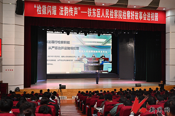 10月16日,九游在线官网_九游(中国)法治宣传系列活动之“检徽闪耀 法韵传声”铁东区人民检察院检察好故事会进校园在校礼堂举行。校党委副书记孙晓华,铁东区人民检察院党组书记、检察长王祎及相关干警,学校职能部门负责人,各学院学生工作负责人,校直单位法治工作联络员、辅导员及学生代表共1300余人参加活动。
