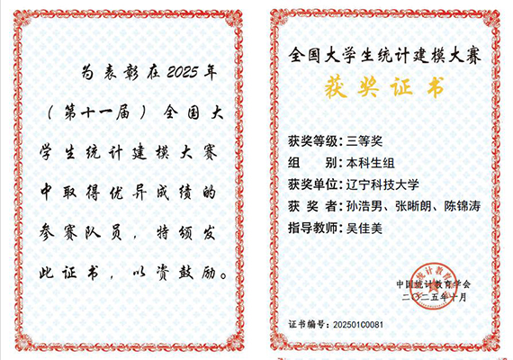 据了解,本届赛事由中国统计教育学会、教育部高等学校统计学类专业教学指导委员会与全国应用统计专业学位研究生教育指导委员会联合主办,东北财经大学承办,吸引了包括复旦大学、哈尔滨工业大学等885所高校的9万余名学生参与。王梓成、王楚惟、武彦旭团队完成的作品“基于SNN-TimesNet融合模型的股票价格预测研究”(指导教师杨鹏),孙浩男、张晰朗、陈锦涛团队完成的作品“社交媒体多模态数据的统计挖掘与抑郁倾向预测研究”(指导教师吴佳美),历经校赛、省赛、国赛层层选拔,荣获全国三等奖。学校还荣获省级一等奖4项、二等奖6项、三等奖5项,展现了学校在统计建模与数据分析领域的教学基础和人才培养成效。