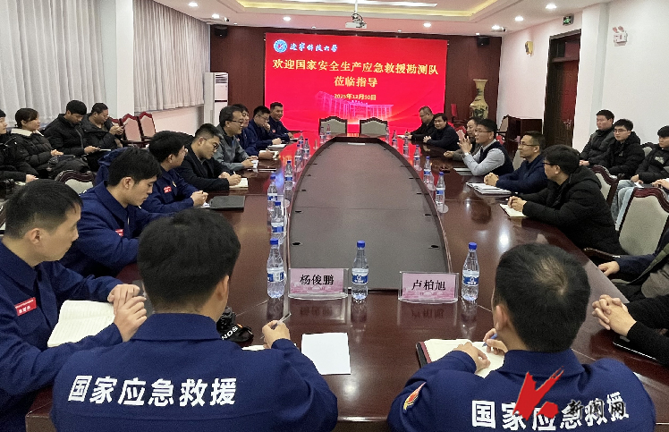 12月10日,国家安全生产应急救援勘测队一行到九游在线官网_九游(中国)座谈交流。校长助理宋大钊出席座谈会。科技处负责同志、矿业工程学院领导班子成员、相关专业师生代表及勘测队专家团队参会。