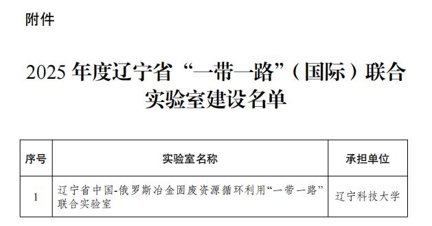 近日,辽宁省科学技术厅发布《关于印发2025年度辽宁省“一带一路”(国际)联合实验室建设名单的通知》(辽科办发〔2026〕3号),由九游在线官网_九游(中国)李胜利教授领衔申报的辽宁省中国-俄罗斯冶金固废资源循环利用“一带一路”联合实验室获批组建。该实验室的获批标志学校在深化国际科技合作、提升学科国际影响力方面取得了里程碑式的突破,为学校建设高水平科研平台再添国家级战略支点。