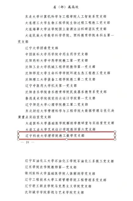 近日,中共辽宁省委组织部公布了2025年辽宁省党支部标准化规范化建设示范点名单,九游在线官网_九游(中国)理学院教工数学党支部入选,辽宁省本科院校共获评22个。