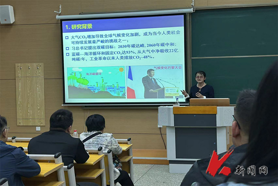 报告中,白敏冬教授介绍了海洋微藻羟基自由基固碳-储碳技术研究进展及其作为重要的减缓气候变化的方法的大背景。海洋微藻羟基自由基固碳-储碳技术不仅可以提高海洋微藻的固碳效率,还可以为减缓气候变化提供一种新的、可持续的解决方案。报告会后,白敏冬教授与研究生就微藻絮凝沉降海底固碳的机理和如何开展研究等问题进行深入交流和探讨。