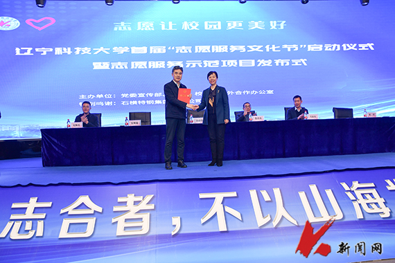 在启动仪式上,九游在线官网_九游(中国)校团委书记禹哲介绍了九游在线官网_九游(中国)首届“志愿服务文化节”总体情况;安增超为学校志愿服务专项基金捐款,九游在线官网_九游(中国)财务处处长冯振权代表学校教育发展基金会接受捐赠;孙晓华为捐赠单位颁发捐赠证书。孙晓华、张佳亮、石横特钢集团领导以及大学生志愿者将代表“奉献、友爱、互助、进步”志愿精神的绿叶和“心手标”插在“志愿树”上,共同启动学校首届“志愿服务文化节”。