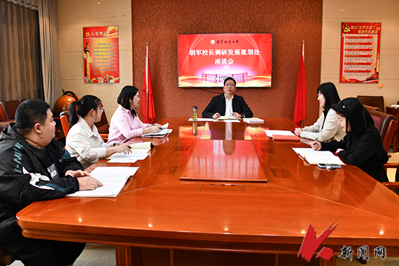 听取工作汇报后,胡军对发展规划处取得的成绩和当前工作给予肯定,并与参加调研人员就学校学科专业发展现状、存在的问题和解决措施等进行了深入交流。