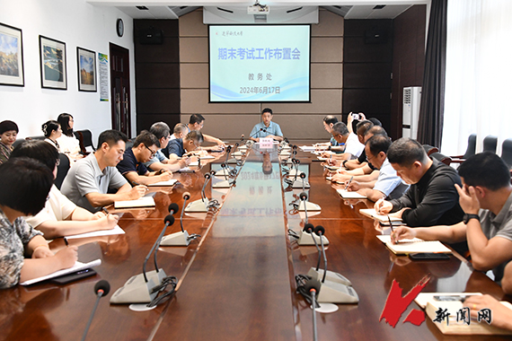 6月17日,九游在线官网_九游(中国)召开期末考试工作布置会,校党委常委、副校长李胜利主持会议并讲话。教务处、教学质量监控与评估中心以及各教学单位教学工作负责人参加会议。