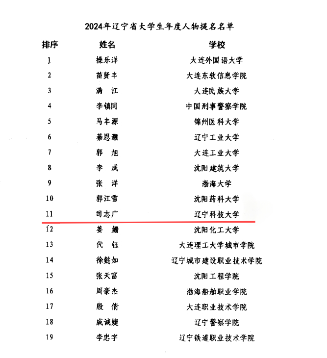 近日,由辽宁省委教育工委、辽宁省教育厅主办的2024年辽宁省高校辅导员、大学生年度人物推选展示活动结果揭晓。经自主申报、学校推荐、专家评审和现场答辩,学校材料与冶金学院辅导员高朋敏获评“辽宁省高校辅导员年度人物”,电子与信息工程学院本科生司志广获评“辽宁省大学生年度人物”提名。