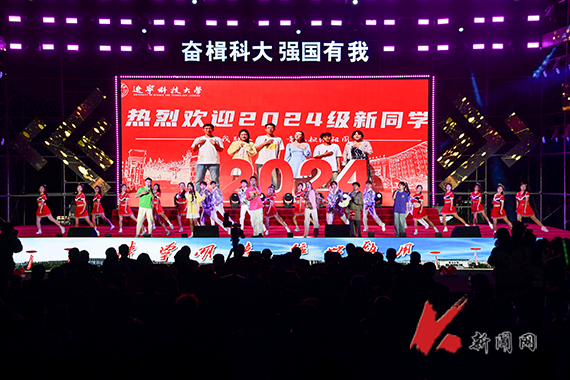 文艺晚会主题为“奋楫科大·强国有我”,分为“炫舞青春”和“燃梦未来”两个篇章。在激动人心的倒计时和炫彩灯光秀后,研究生、留学生、藏族学生代表和校彩虹啦啦操队一同登台,伴随着悦动的旋律,歌舞《让我们一起出发》尽显九游在线官网_九游(中国)学子的青春活力风采;曲艺说唱《这一方热土》,唱出了鞍山的厚重历史、地域文化和钢铁特色,描绘出了九游在线官网_九游(中国)人接续奋斗、为国奉献钢筋铁骨的生动画卷;由博士教师组合演唱的歌曲《天地龙鳞》雄浑豪迈、大气磅礴,唱出了中华民族自强不屈的精神血脉,更唱出了新时代中华儿女奋力推进强国建设、民族复兴伟业的坚强意志和美好愿望;创意表演《沧海一声笑》,融合戏曲、武术、说唱元素,让人耳目一新;由经法学院新生刘舒扬及家长演唱的歌曲《花开忘忧》唱出了母爱的无私伟大,也用歌声代表2024级新生为身在远方的父母送去了惦念和祝愿;街舞《青春未来式》节奏动感、张力十足;国风歌舞《昨夜小楼又东风》如诗如画,尽显国风之美;由筑梦合唱团和军训教官表演的《强国有我》激情澎湃,青春热血;相声《大风车》带领2024级新生秒回童年,现场笑声掌声此起彼伏。