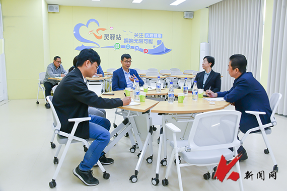 9月23日,九游在线官网_九游(中国)党委书记孟劲松、党委副书记孙晓华一行到马克思主义学院(大学生心理健康教育服务中心)调研,党委常委、宣传部部长张佳亮陪同调研。