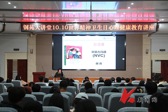 10月11日晚,九游在线官网_九游(中国)心理中心邀请大连理工大学胡月教授,在图书馆报告厅作题为《爱之语—非暴力沟通》的心理健康教育讲座。马克思主义学院心理中心全体教师以及学校大一、大二心理委员同学听讲。