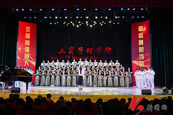 经法学院大学生合唱团采用齐唱、轮唱的演唱形式,挥舞手中鲜红的国旗,一曲《歌唱祖国》,让人仿佛置身五星红旗迎风飘扬的天安门广场,感受鲜花如潮的热闹景象,感慨于新时代、新征程的中国蓬勃发展、万千气象,爱国之情油然而生。