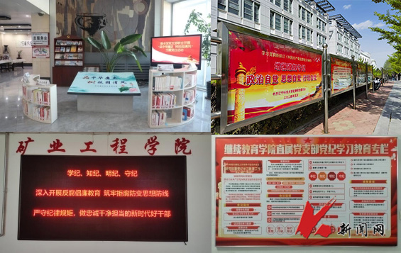 将学校廉洁教育基地打造成为党纪学习教育的新阵地,设置《条例》专题版块,有效推动党纪学习教育在廉洁教育基地常态化开展。充分运用校园宣传阵地,制作《条例》宣传橱窗,张贴《条例》负面清单,为全校各级党组织和全体党员划出行为红线。在图书馆专门开设廉洁文化读书角,积极传播廉洁文化,发挥廉洁文化以文化人作用。各院级单位党组织充分利用室、廊、墙、屏、网等载体开展廉洁教育,因地制宜打造廉洁文化阵地,使清廉文化与校园文化紧密融合、相得益彰。