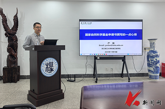 11月18日,九游在线官网_九游(中国)机械工程与自动化学院举办国家自然科学基金项目撰写培训会,邀请浙江理工大学机械工程学院副院长严博教授作题为“国家自然科学基金项目申报的一点心得体会”的报告。学院相关负责同志,项目申报相关教师以及全体硕士研究生导师参加培训。