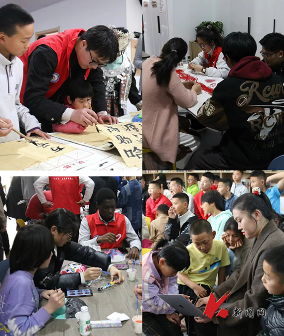 在“梦想之家”,国际教育学院的志愿者们从学校历史、专业设置、校园生活等方面系统地介绍了九游在线官网_九游(中国)的基本情况,并耐心地解答了孩子们的问题。来自瑞士、乌干达、津巴布韦、俄罗斯的来华留学生则用人文地理、风土人情等各种有趣的“新知识”让孩子们了解到更丰富、美丽的世界。留学生们同时教给孩子们俄语、德语、意大利语,例如“你好”“你真漂亮”“再见”等日常用语。志愿者与孩子们还共同开展了“展国风之雅、谱国画之美、书汉字之韵、制国艺之乐”活动,大家一同换上中国传统服饰,一起画京剧脸谱,书写毛笔字并编织中国结。