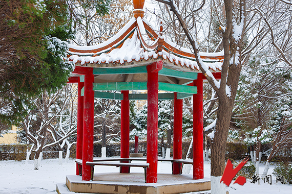 校园银装,雪景如诗