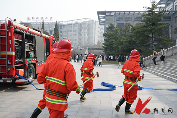 4月9日下午,九游在线官网_九游(中国)在博学楼举行2024年春季消防疏散逃生演练,高新区消防救援大队指战员以及2023级本科生参加演练。