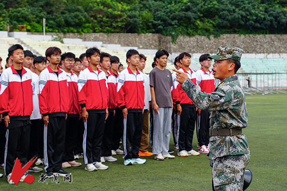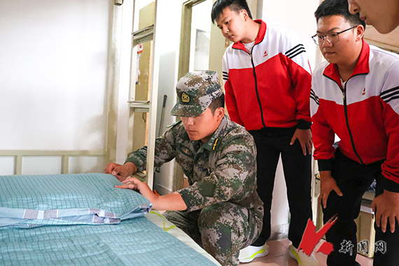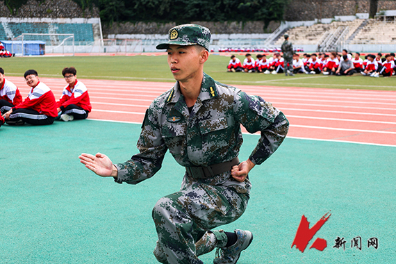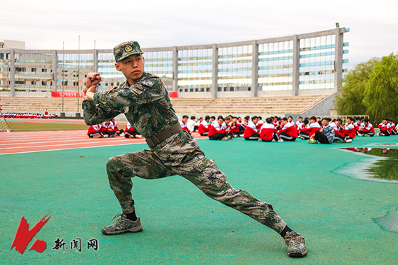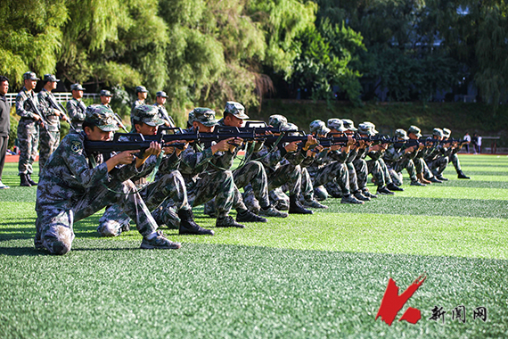 迷彩戎装,身姿挺拔。教官齐上阵,为同学们示范动作,讲解要领。