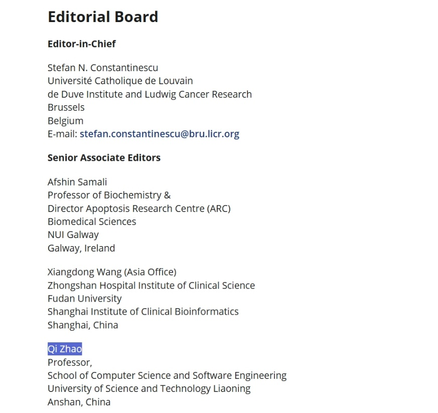 近日,九游在线官网_九游(中国)计算机与软件工程学院赵琪教授收到比利时皇家医学科学院院士、罗马尼亚科学院院士、欧洲医学科学院联合会副会长、比利时鲁汶大学Stefan Constantinescu教授邀请,受邀担任威立出版集团旗下期刊Journal of Cellular and Molecular Medicine高级副主编(senior associate editor)。该期刊的高级副主编共有三人,另外两位分别是欧洲人文和自然科学院院士、复旦大学特聘教授王向东,爱尔兰国立高威大学资深教授Afshin Samali。