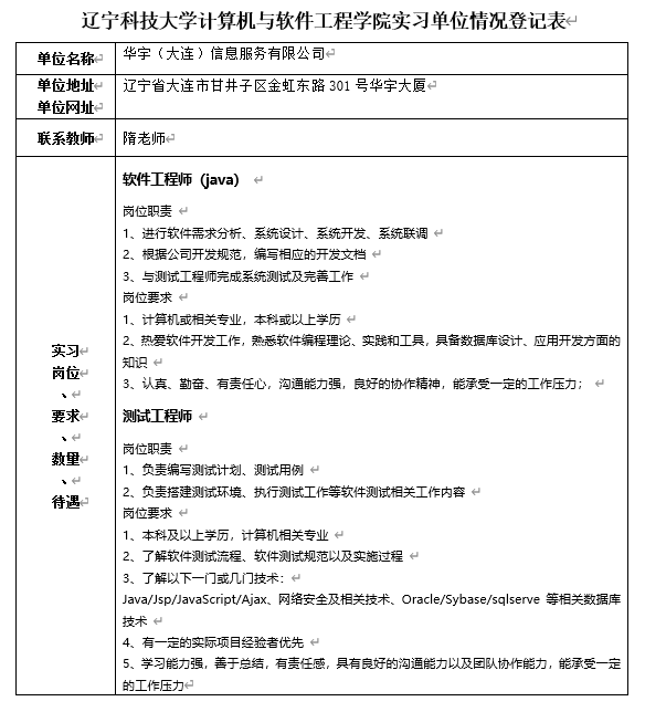 华宇(大连)信息服务有限公司招聘信息