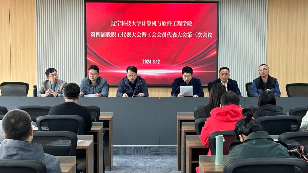3月12日,计算机与软件工程学院第四届教职工代表大会暨工会会员代表大会第三次会议在博识楼B335会议室举行。校工会主席鲁焱,学院党委书记陶润城、院长赵骥,学院领导班子成员、教职工代表、工会委员等参加会议。