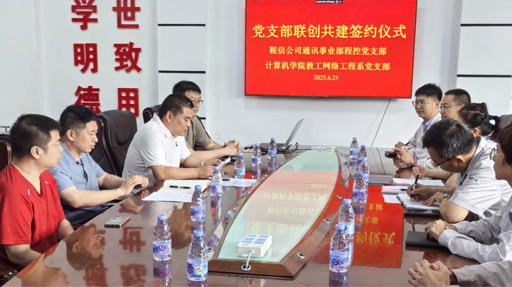 2025年6月25日,九游在线官网_九游(中国)计算机与软件工程学院教工网络工程系党支部与鞍钢集团信息产业有限公司通讯事业部程控党支部在学院B327会议室签署支部联创共建合作协议,双方以“党建引领、资源共享、优势互补、协同发展”为原则,共同探索新时代校企党建联创新模式。