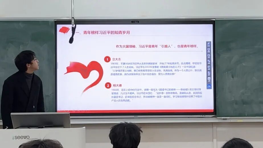 主讲人唐浡瑞围绕青年成长主线,紧扣青年学生发展需求展开讲解。他以习近平总书记的知青岁月为切入点,分享其“立大志、明大德、成大才、担大任”的青春历程;解读共青团的性质、入团标准与使命,破除对团员身份的认知误区;回顾中国共产党百年奋斗历程与四大历史时期的伟大成就,引导团员树立正确价值观。讲解兼具理论深度与实践指引,让团员明晰青年成长与国家发展紧密相连。