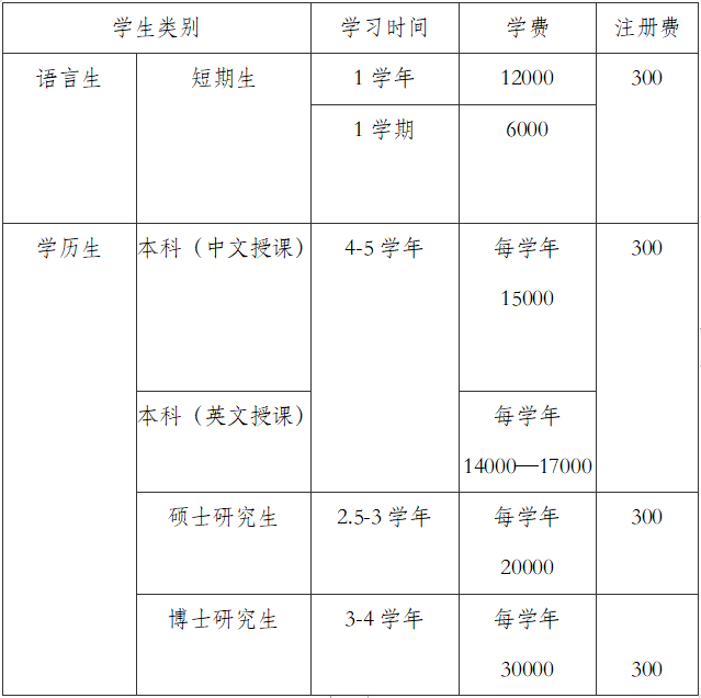 (二)来华留学生的学费于每学年开始时一次性收取。