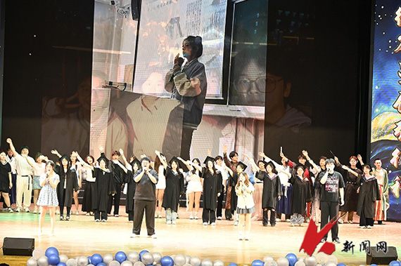 晚会分为“初见·年华”“成长·岁月”“飞扬·青春”三个篇章,如诗般勾勒学子四年成长轨迹。学院领导以“敢教日月换新天”的豪情与“千锤万凿出深山”的坚韧寄语毕业生,愿他们以责任为基、担当为梁奔赴远方。V-Show舞团以《爱的主打歌》热舞开场,尽情释放青春活力;土木学院毕业生的歌曲《干杯》唱尽同窗情谊的珍贵与不舍;管理学院毕业生带来古典舞《小重山》,展现古典与现代交融之美;材冶学院毕业生演唱歌曲《最后一页》《那些年》,倾诉对校园生活的眷恋;笑琢俱乐部《成长的烦恼》以幽默引发共鸣;汀兰民乐社《权御天下》奏响壮志豪情;小品《万松书院》表演生动吸睛,赢得全场掌声。师生献唱《彩虹》送祝福,全场毕业生共唱《重返十七岁》,将晚会气氛推向高潮,为青春岁月留下温暖而难忘的注脚。