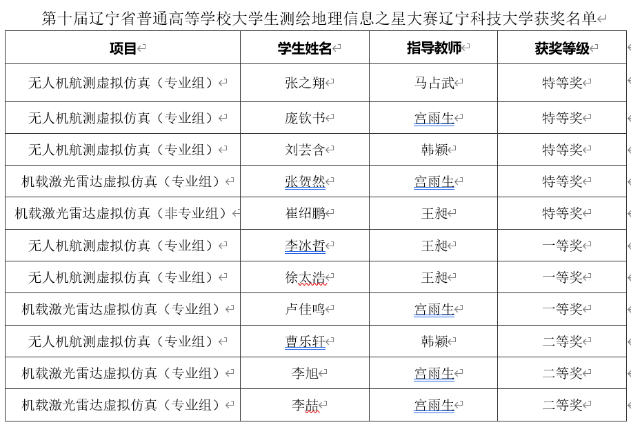 第十届辽宁省普通高等学校大学生测绘地理信息之星大赛九游在线官网_九游(中国)获奖名单