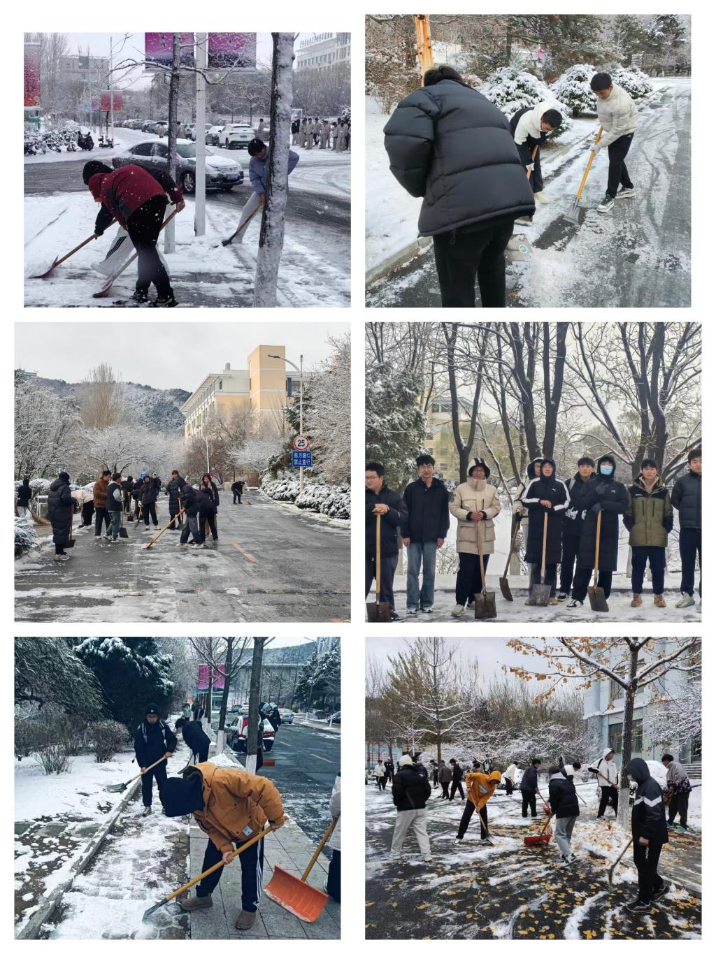 2024年入冬以来,土木工程学院积极响应学校号召,组织学生志愿者开展校园扫雪活动,为校园交通安全畅通贡献力量。