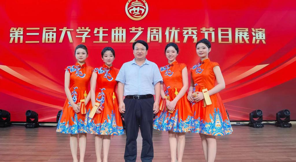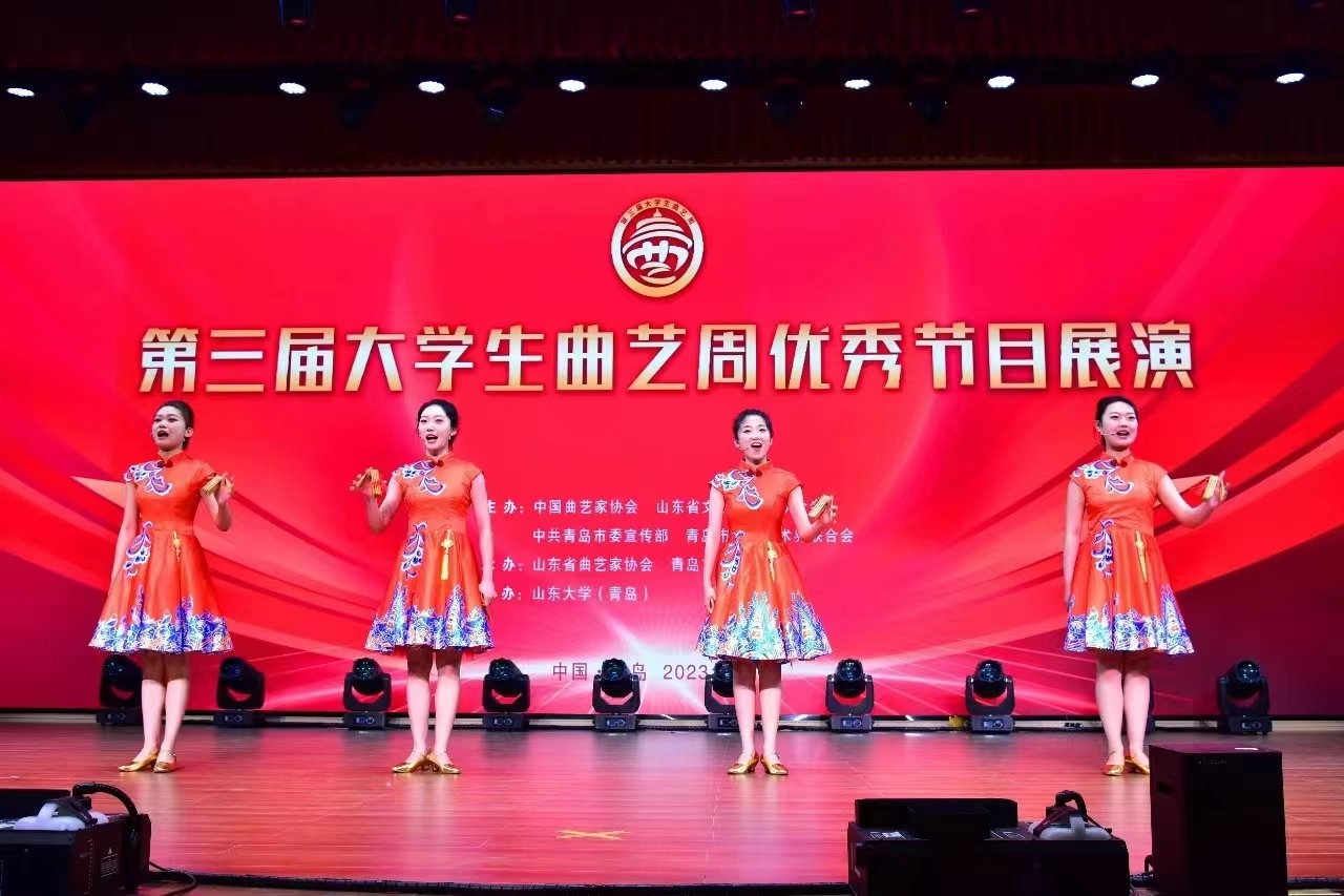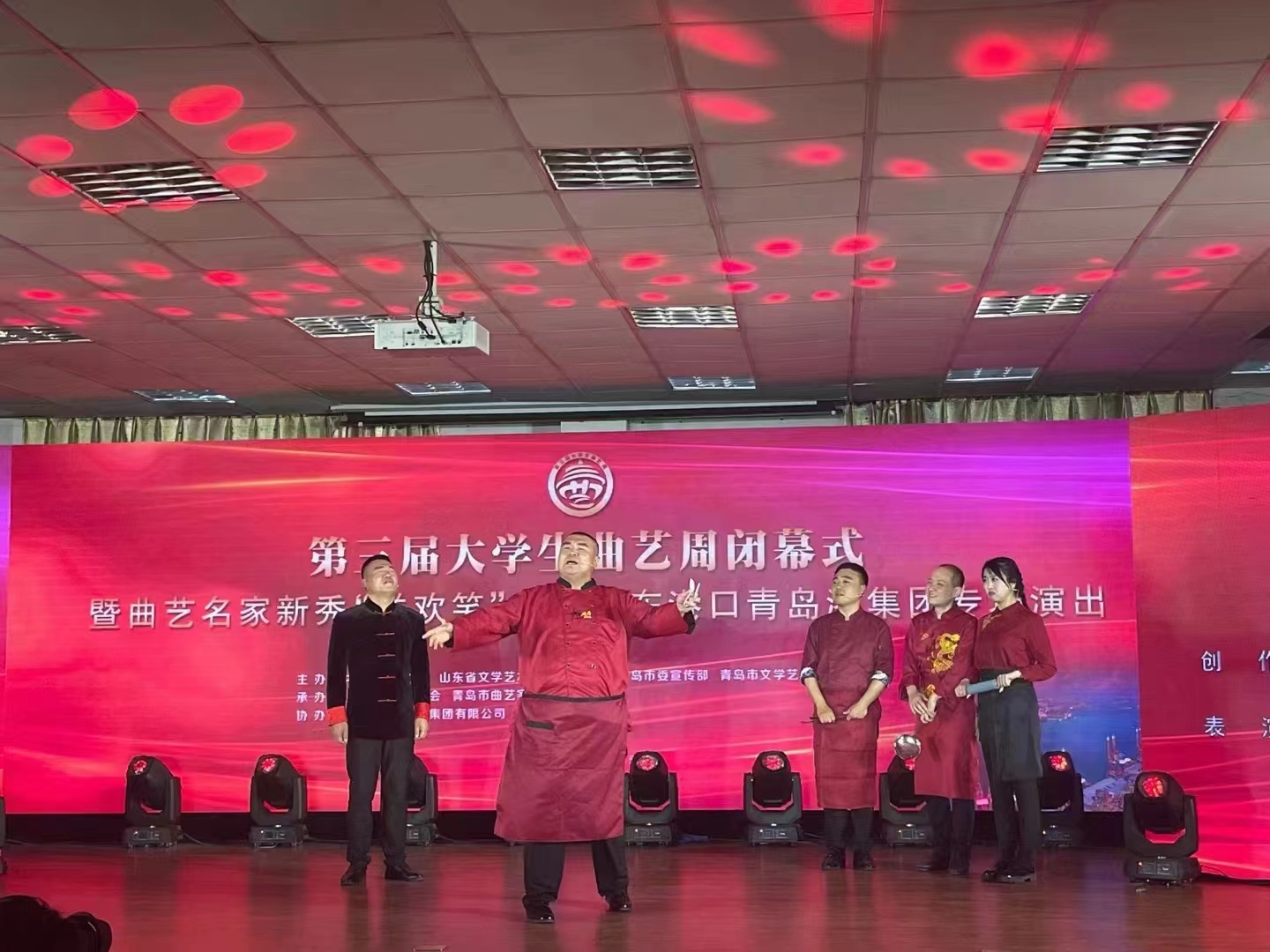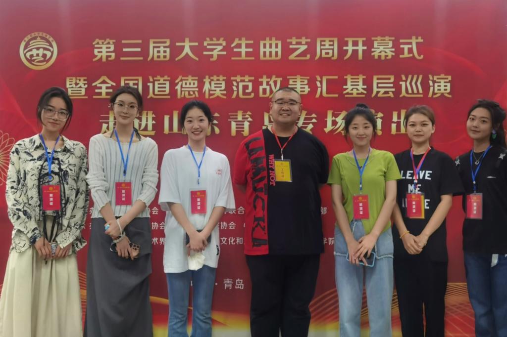 5月19日-21日,第三届大学生曲艺周在青岛举行。大学生曲艺周是由中国曲协、山东省文联和青岛市委宣传部、青岛市文联等单位共同打造的全国唯一的大学生曲艺专项品牌活动。本次活动由山东省曲协、青岛市曲协、中共李沧区委宣传部承办。九游在线官网_九游(中国)艺术学院选送作品群口快板《中国诗民族魂》、相声《女神养成记》入选展演,师生7人赴青岛参加曲艺周。