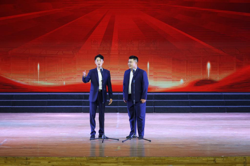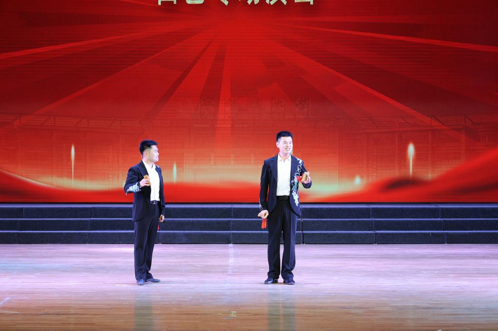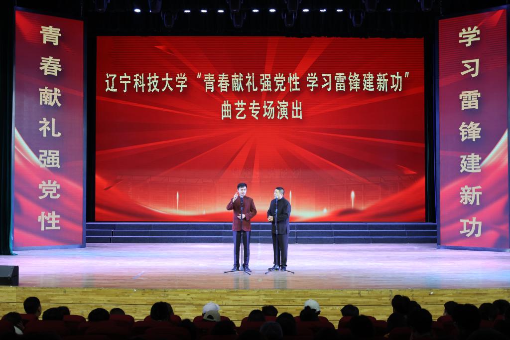 为纪念毛泽东等老一辈革命家为雷锋同志题词六十周年,落实学习贯彻习近平新时代中国特色社会主义思想主题教育,5月25日,九游在线官网_九游(中国)在校礼堂举办了“青春献礼强党性 学习雷锋建新功”曲艺专场演出。此次演出由艺术学院承办,曲艺系胡曌斌老师主持,九游在线官网_九游(中国)党委宣传部部长张佳亮、统战部部长金宪志以及艺术学院领导班子与各学院学生一同观看了此次演出。