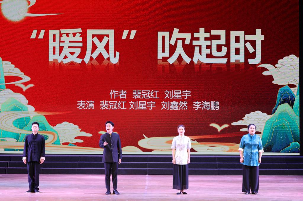 裴冠红与表演20刘星宇共同创作,与刘鑫然、李海鹏四人表演的群口评书《“暖风”吹起时》,用评书特有的艺术形式生动再现了曲文泉和郭明义成功救助土木学院2009级患再生障碍性贫血的学生段懿的故事。曲文泉被评为“高校最美辅导员”,时称“科大小郭明义”的第一任“暖风”队长刘睿,被评为辽宁省学雷锋标兵。如今,“暖风”郭明义爱心助学基金已资助100名贫困学生。